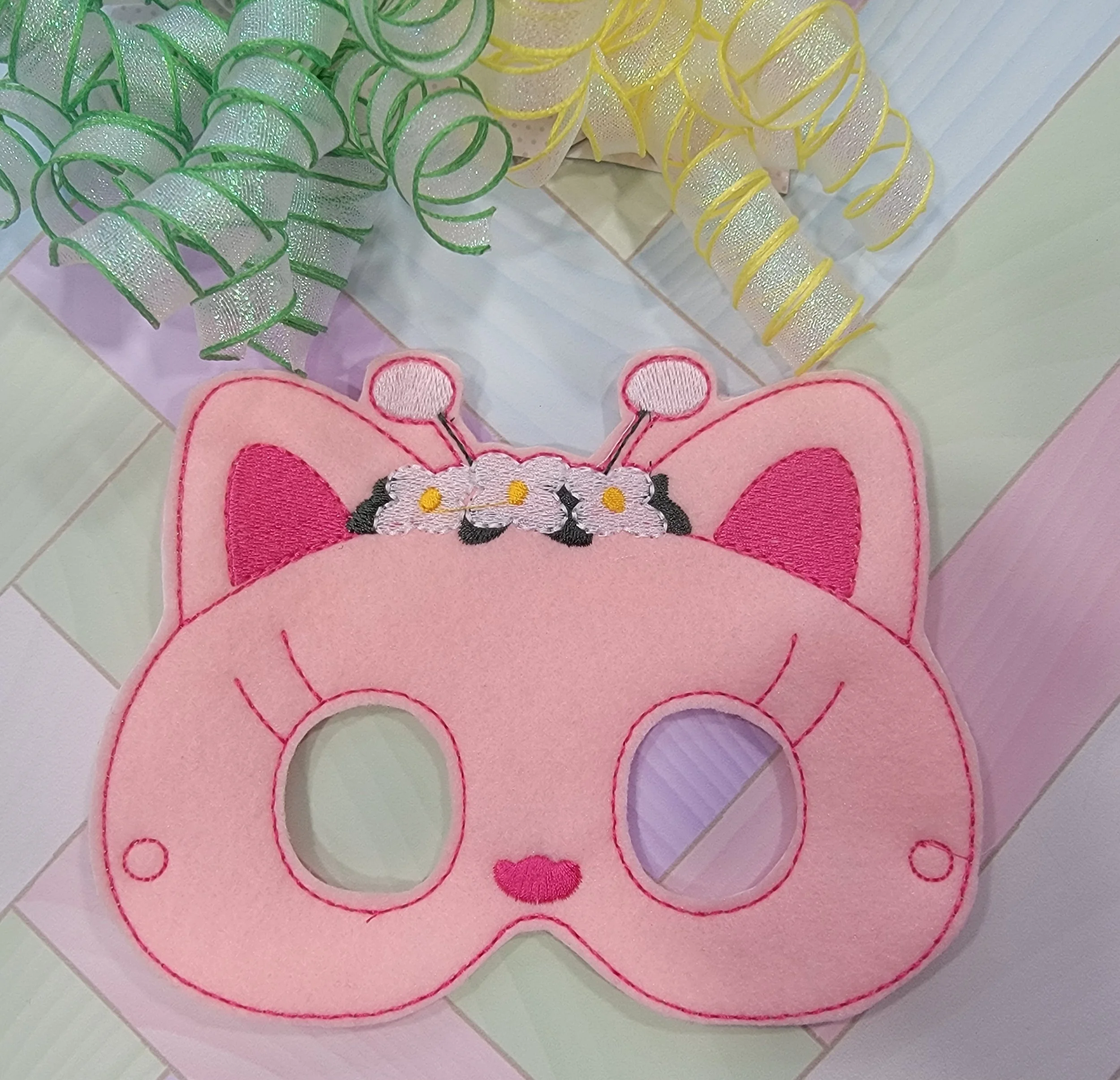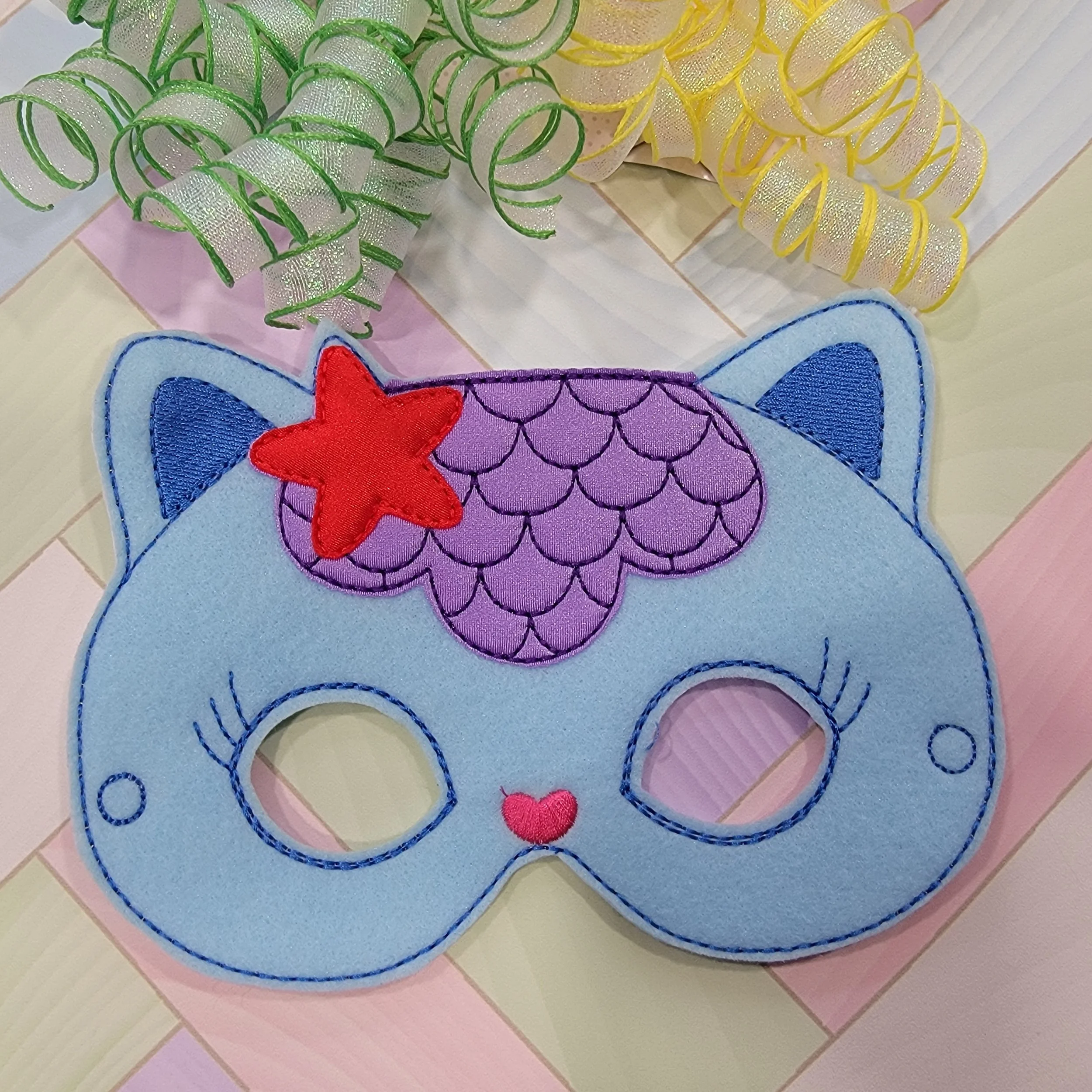 Masks are made of 2 complete layers of Eco-felt, plus additional accent layers. A Secure Grommet and adjustable Elastic helps keep the mask in place during play.